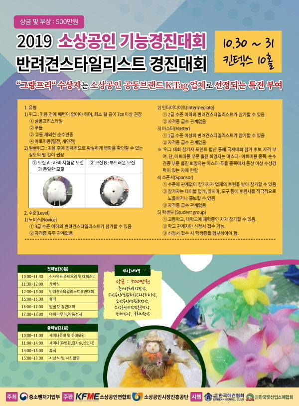 [시사뉴스 윤호영 기자] ‘2019 소상공인 기능 경진대회- 반려견스타일리스트 경진대회’가 오는 30일부터 31일까지 이틀간 일산킨텍스 전시관에서 개최된다.