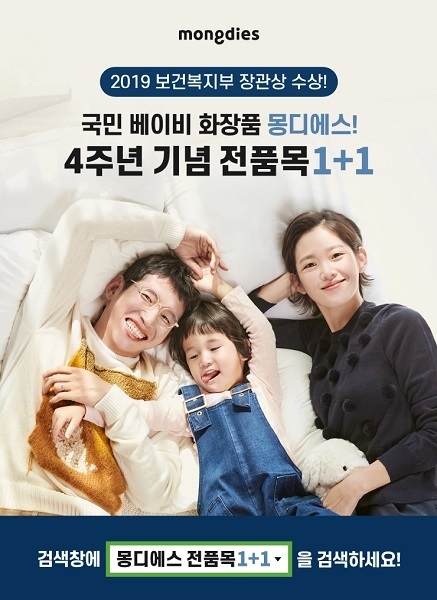 [시사뉴스 윤호영 기자] 안전한 성분의 유아 화장품으로 육아맘들에게 인기를 끌고 있는 브랜드 몽디에스가 4주년 기념 전품목 1+1 이벤트를 실시한다. 해당 이벤트는 토스 행운 퀴즈와 함께해 더욱 많은 관심을 받고 있다.