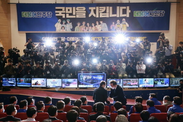 SBS 출구조사에 따르면 민주당과 더불어시민당은 지역구 138~158석, 비례대표는 16~20석 등 154~177석을 확보할 것으로 예상됐다.