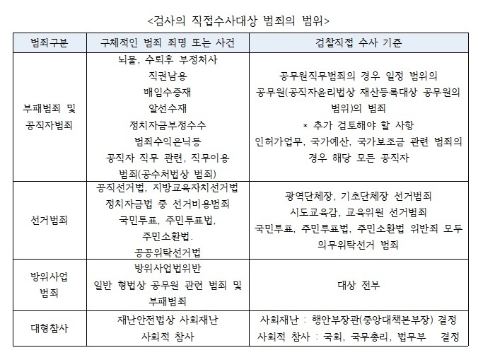 보고서는 검사의 직접수사를 최대한 줄이고자 한 검찰청법 개정 취지에 따라 검사가 수사를 개시할 수 있는 중요범죄의 범위를 전체 대상이 아니라 보다 세분화해 구체적으로 정해야 한다고 지적했다.