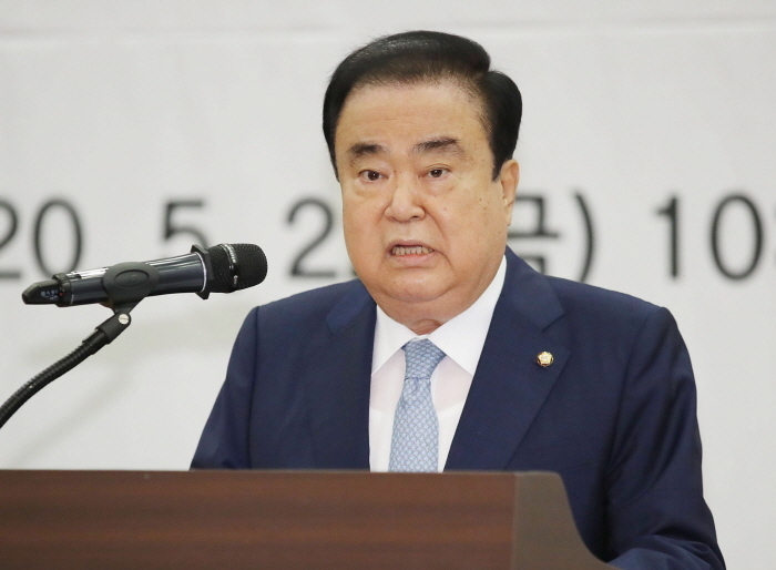 문 의장은 "우리는 지금 한번도 경험하지 못한 두렵고 낯선 시대를 걷고 있다"며 "전세계가 예외없이 코로나19 사태에 직면해 인간의 삶이 코로나 전후로 나뉜다는 전망이 나온다"고 지적했다.