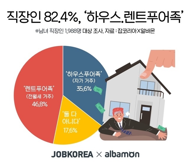 취업포털 잡코리아가 알바몬과 함께 직장인 1988명을 대상으로 ‘하우스.렌트푸어’ 현황에 대해 조사했다.
