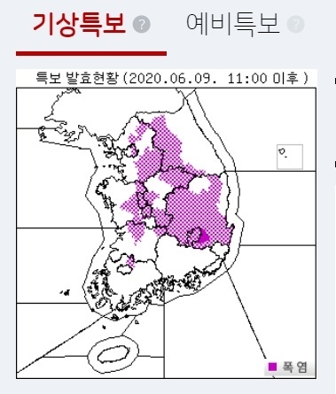 기상청에 따르면 이날 오전 11시부터 서울 동남권과 동북권에 폭염주의보가 발효됐다.