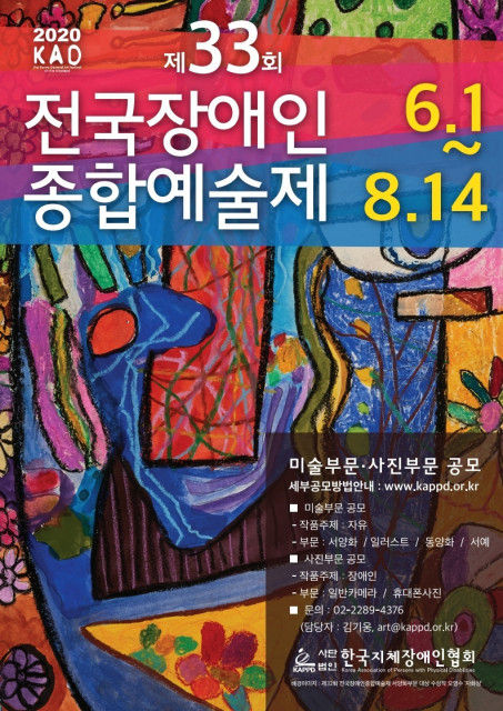 2020년 33회째를 맞은 ‘전국장애인종합예술제’는 서양화, 일러스트, 동양화, 서예, 일반 사진, 휴대폰 사진 6개 부문으로 전국의 장애인과 그 가족은 누구나 신청할 수 있다.