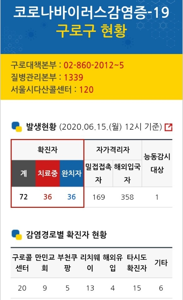 코로나19 발생현황, 구로구청 "72번째 확진자 발생"