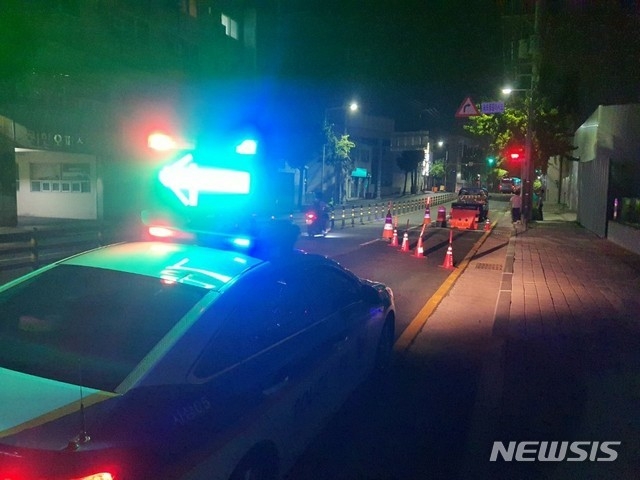 신고를 받은 경찰은 편도 2개 차로 중 1개 차로에 입간판을 설치하는 등 차량통행을 통제하고 있다.