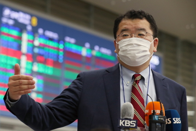 미국 방문을 마친 후 귀국한 최 차관은 이날 인천국제공항 제2터미널에서 취재진과 만나 "비건 부장관과 미국 측은 적극 공감을 표했다"며 "조만간 신설체를 추진하기 위한 협의 과정을 통해 10월 중순께 추진하는게 목표"라고 밝혔다.