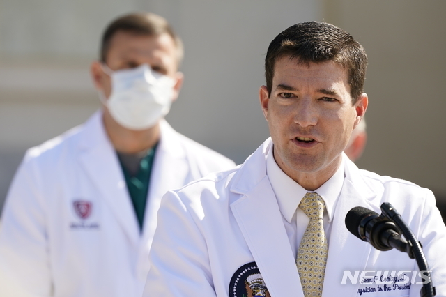 유튜브 백악관 공식 계정에 따르면 대통령 주치의인 숀 콘리는 4일(현지시간) 월터 리드 국립군병원에서 기자회견을 열고 "대통령은 두 차례의 산소 포화도 저하를 겪었다"라고 밝혔다.