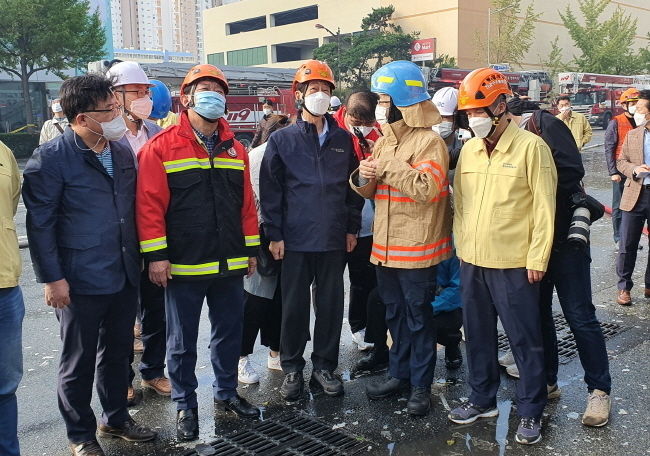 한편 진영 행정안전부 장관과 정문호 소방청장이 9일 울산 남구 주상복합아파트 화재 소식에 현장으로 달려가 화재 대응·수습 및 피해 상황을 살펴봤다.
