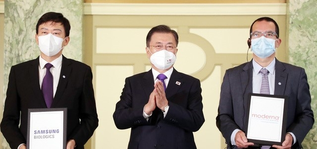 산업부·복지부, 모더나 사는 모더나의 잠재적인 한국 투자 및 생산 관련 논의 협력을 위한 양해각서(MOU)에 서명했다. 모더나 사는 한국에 mRNA 백신 생산 시설 투자와 한국의 인력 채용을 위해 노력하고 한국 정부는 모더나 사의 한국내 투자 활동 지원과 비즈니스를 위한 협력하는 것 등이 골자다.