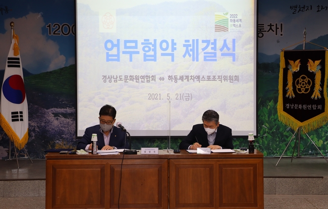 [시사뉴스 정윤철 기자] 하동세계차엑스포조직위원회(위원장 김경수 도지사)는 지난 21일 화개면사무소 2층에서 경상남도문화원연합회(회장 김길수) 및 20개 시·군 문화원과 업무협약을 체결했다고 24일 밝혔다.