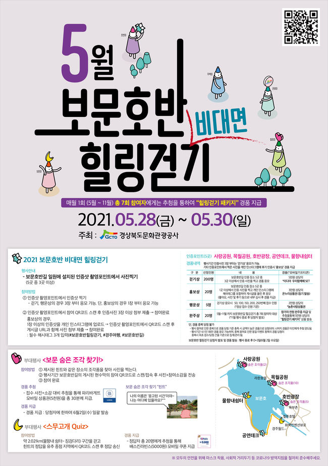 [시사뉴스 정윤철 기자] 경상북도문화관광공사(사장 김성조, 이하공사)는 오는 28일부터 30일까지 보문호반산책길 일원에 ‘보문호반 힐링걷기’ 비대면 이벤트를 진행한다.