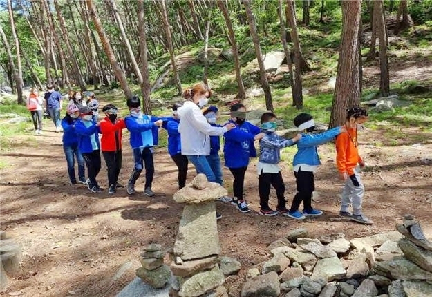또한 친구들과 협동해 ‘애벌레 걷기’라는 주제로 시각장애인 체험을 해보고, 숲 주변의 돌을 이용하여 돌탑 쌓기, 통나무위에서 가위바위보 게임, 나무에 매달리기 등 숲속놀이를 통하여 평소 접하기 쉽지 않은 숲 체험으로 어린이들이 자연과 호흡하며 숲의 소중함을 배우는 시간이 됐다.