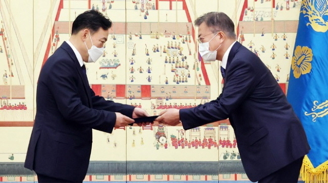 [시사뉴스 홍경의 기자] 문재인 대통령이 1일 김오수 신임 검찰총장에게 임명장을 수여했다.