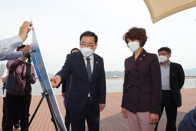 간담회에 이어 허성무 창원시장과 한정애 환경부장관은 마산만 수질 실태를 점검하기 위해 마산항을 직접 방문해 현장을 확인하고 마산만의 지형적 여건을 반영한 육상 오염원 관리와 생물 다양성 보전 등 지속가능한 환경을 위해 중앙정부와 지자체 간 협력을 강화하자는 데 뜻을 모았다.