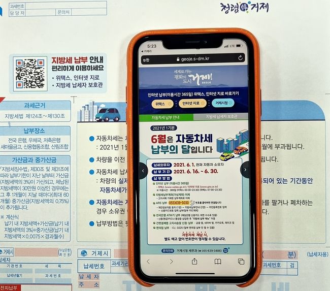 [시사뉴스 정윤철 기자] 거제시(시장 변광용)는 올해 6월 자동차세 정기분부터 QR코드를 활용해 지방세 납부와 안내가 가능한 납기내 고지서를 제작·발송하기로 했다.