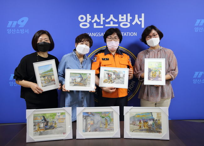 [시사뉴스 정윤철 기자] 양산소방서(서장 박정미)는 3일 양산 어반스케치 동호회로부터 소방 활동 모습을 담은 미술작품 7점을 기증받았다고 밝혔다.