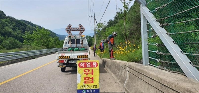 [시사뉴스 정윤철 기자] 함양군은 도로변 잡초와 덩굴류 등을 제거해 쾌적한 도로환경 정비에 나섰다.