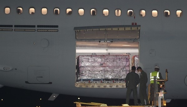 [시사뉴스 김도영 기자] 미국에서 공여한 101만명 분의 얀센 코로나19 백신이 5일 서울공항에 도착했다.