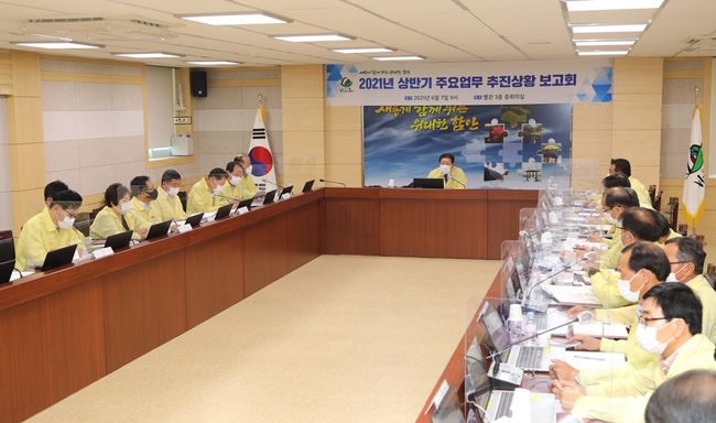 조 군수는 군정 전 분야에 걸쳐 구체적인 성과를 도출해야 하는 아주 중요한 시기임을 주지시키며 현재 정상적으로 추진 중인 사업은 보다 발전적인 방향으로 확대하고, 부진한 사업은 보완대책을 강구하여 정상 추진될 수 있도록 전 직원이 노력할 것을 당부했다. 특히 코로나로 인해 침체된 지역경제 활력을 높이는 데 중점을 두고 일자리 창출, 미래 신성장 산업 발굴, 군민의 삶의 질 향상 등 군정이 균형 있게 발전할 수 있도록 박차를 가할 것을 주문했다.