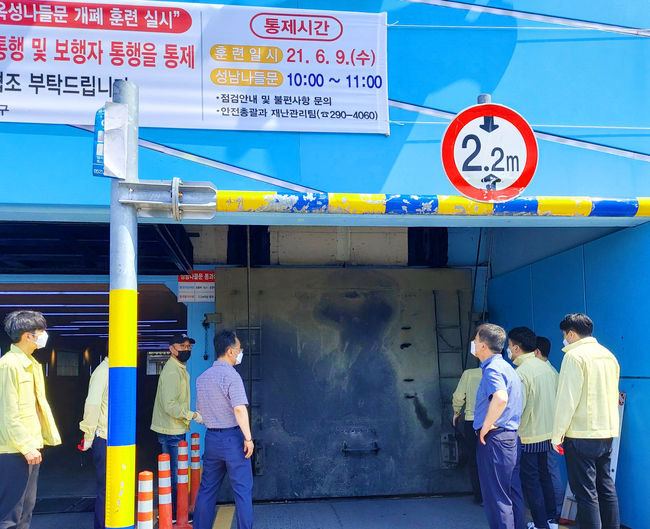 중구는 9일 오전 10시부터 12시까지 2021년 여름철 자연재난을 대비하기 위해 성남과 옥성 등 두 곳의 나들문에서 개폐 훈련을 벌였다.