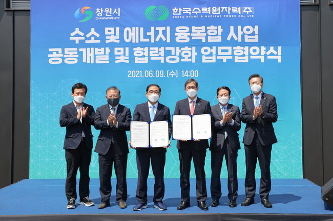 [시사뉴스 정윤철 기자] 한국수력원자력(사장 정재훈, 이하 한수원)이 9일 창원시 수소에너지 순환시스템 실증단지에서 창원시(시장 허성무)와 그린뉴딜 및 탄소중립 선도를 위한 ‘수소 및 에너지 융복합 사업 협력 강화 업무협약(MOU)'을 체결했다.