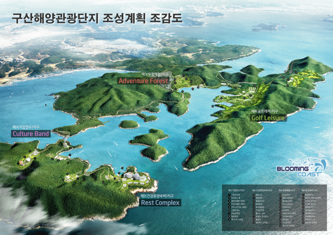 구산해양관광단지는 △기업연수지구 △건강휴양숙박지구 △모험체험지구 △골프레저지구로 구성된다. 시설의 대중성 및 접근 용이성을 가장 중요한 사항으로 잡고, 여가를 향유 할 수 있는 관광단지에 각종 사업지구를 연계해 시민과 관광객, 기업을 위한 ‘휴양형 복합연수원’으로 조성할 계획이다. 이렇게 되면 시는 공공복리 증진을 추구하는 공익적 목적을 달성할 수 있다.