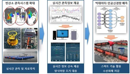 국립수산과학원은 정보통신기술(ICT) 기반 산소부족 물 덩어리 관측시스템을 구축해 양식장 피해 예방을 위한 감시체계를 더욱 강화하고 있으며, 실시간 관측 정보를 스마트폰 앱과 수과원 홈페이지를 통해 어업인 및 관련기관에 신속하게 제공하고 있다.