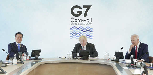 문재인 대통령은 12일(현지시간) 보건을 주제로 한 G7 정상회의에 참석했다.