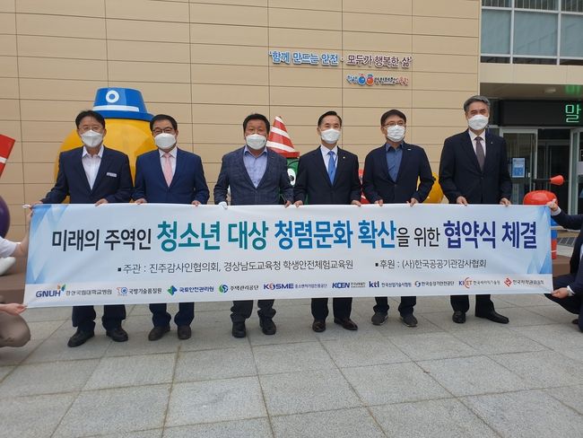 진주감사인협의회는 14일 경남도교육청학생안전체험교육원과 협약을 체결하고, 청소년 대상 청렴교육과 안전교육을 협업으로 추진하기로 했다. 또한 한국공공기관감사협회의 후원으로 청렴수첩을 제작 배포해 청소년들의 청렴의식 향상을 위한 홍보활동도 벌였다.