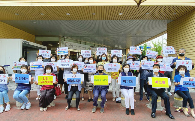 이날 캠페인은 30여명의 주민이 참여한 가운데 아동학대 예방을 호소하는 핸드피켓 올리기 퍼포먼스를 벌이는 형태로 진행됐다.
