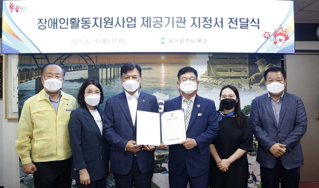 [시사뉴스 정윤철 기자] 울산 북구는 15일 구청장실에서 국민복지재단에 장애인활동지원사업 제공기관 지정서를 전달했다.