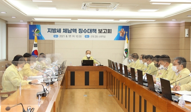 조규호 부군수 주재로 진행된 이날 보고회에서는 전 읍·면장이 참석해 체납세 징수 현황 보고를 시작으로 그간 징수활동과 문제점, 향후 징수대책 보고가 실시됐다.