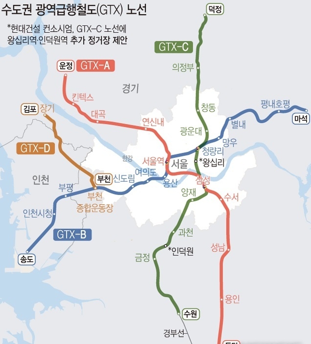 21일 국토부 등에 따르면 지난 17일 GTX-C 우선협상대상자로 선정된 현대건설 컨소시엄은 왕십리역과 인덕원역을 추가 정차역으로 제안했다. 사실상 정차가 확실시되면서 인덕원역 근처 아파트에서는 집값 상승 기대감에 집주인들이 매물을 거둬들이며 호가가 크게 오른 상태다.