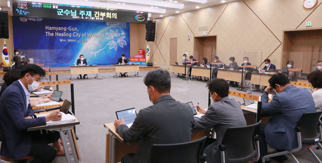 함양군은 21일 오전 서춘수 군수 주재로 간부회의를 개최하고 각 부서별 추진할 중요 현안사업에 대해 보고하고 원활한 사업 추진을 위한 각 부서의 협조를 이끌어 냈다.