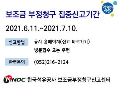 [시사뉴스 정윤철 기자] 한국석유공사는 공공재정 누수 방지를 위한 보조금 부정청구 신고센터를 설치하고, 보조금 부정청구 행위에 대한 집중신고기간을 운영 중이라고 22일 밝혔다.