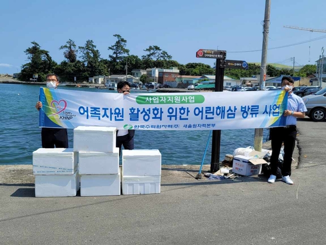 이상민 새울본부장은 “이번 어린해삼 방류를 통해 울주군 해안의 어족자원 조성에 도움이 되길 기대한다”며 “앞으로도 새울본부는 울주군 어민들과 함께 풍족한 해양환경을 만들기 위해 적극 노력하겠다”고 말했다.