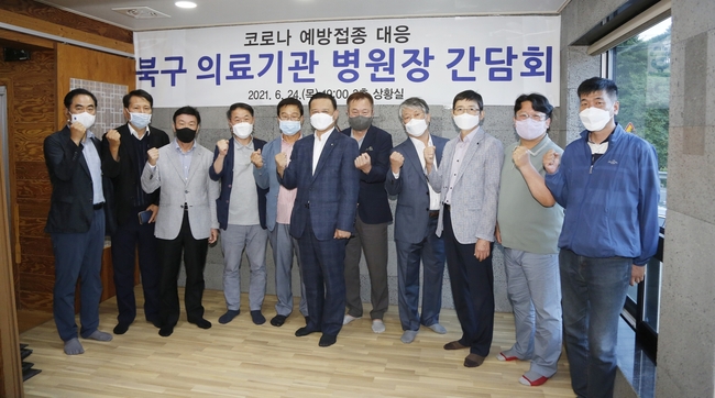 이동권 북구청장과 북구의사회 회장, 지역 의료기관 병원장은 이날 긴급 현장 소통 자리에서 신속하고 안전한 예방접종 추진을 위한 민관 연계협력 방안을 모색했다. 또 코로나19 예방접종과 관련 의료계의 애로사항과 건의사항 등을 청취하는 시간도 가졌다.