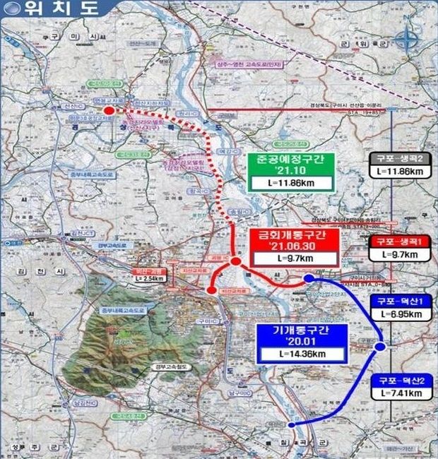 이번 개통으로 구미시 시가지와 국가산업단지를 우회해 도심지 도로의 교통혼잡이 완화되고, 기존 국도 대비 통행시간이 14분(30→16분) 이상 단축될 것으로 전망된다.