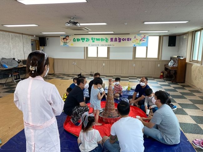 [시사뉴스 정윤철 기자] 고성군(군수 백두현)은 고성군건강가정·다문화가족지원센터(센터장 황순옥) 주관으로 지난 26일과 7월 3일 센터 다목적실에서 5~10세 자녀와 아버지 10가족을 대상으로 부-자 상호작용 지원을 위한 프로그램 '슈퍼맨과 함께하는 토요놀이터'를 실시한다.