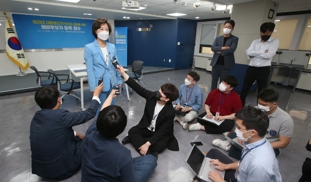 '상대적으로 늦게 출발하는 편인데 전략이 있느냐'는 물음에는 "다른 어떤 정치 기교적 방법 이런 것을 생각하지 않고 대선 후보 경선에 뛰는 방식도 저만의 정공법으로 하겠다"며 "비록 출발이 늦었지만 지지자들께서 민주당다움의 회복에 대해서도 굉장히 기대 크기 때문에 얼마든지 지지를 끌어올릴 수 있다"고 답했다.