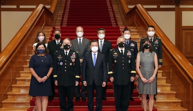 문 대통령은 이날 청와대 본관에서 이임 한미 연합사령관 서훈식 뒤 참석자들과 오찬을 갖고 "한국 최전방에서 근무한 경험도 있고, 한반도 안보정세를 잘 아는 분이 신임 사령관으로 부임하게 되어 기대가 크다"면서 이같이 전했다고 박경미 청와대 대변인이 서면 브리핑을 통해 밝혔다.