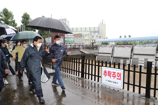 [시사뉴스 정윤철 기자] 허성무 창원시장은 6일 오전 집중호우에 따른 팔용배수펌프장, 양덕천 재해위험개선지구 정비공사 현장 등 관내 주요 시설물에 대해 긴급 현장 점검을 실시했다.