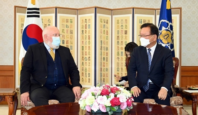 [시사뉴스 홍경의 기자] 김부겸 국무총리는 7일 프랑스 팀머만스 유럽연합(EU) 수석부집행위원장과 만나 기후변화 대응 등을 논의했다.
