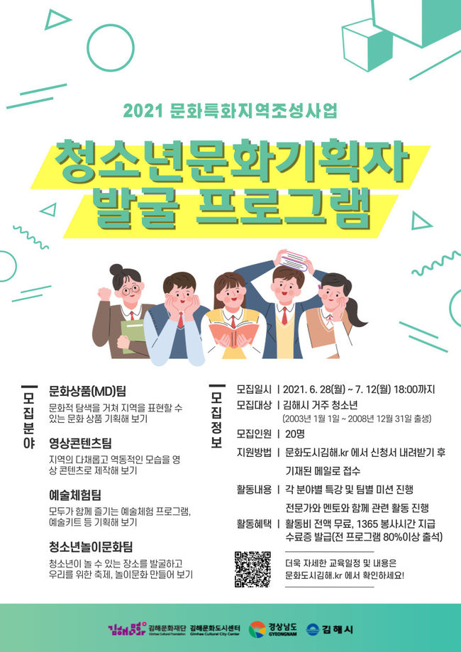 [시사뉴스 정윤철 기자] “문화도시 김해를 만들어나갈 ‘청소년 문화기획자’를 찾습니다!”