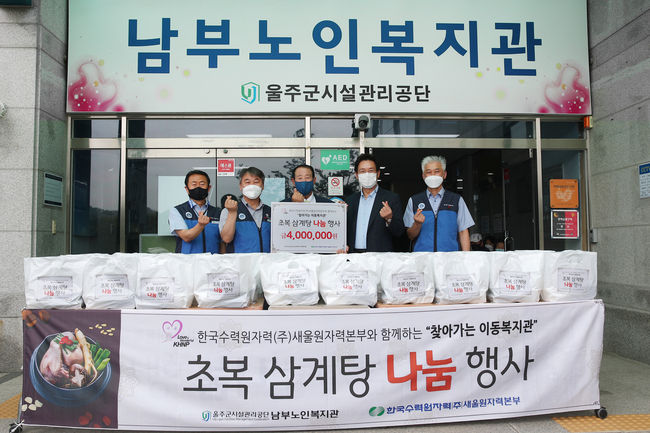 [시사뉴스 정윤철 기자] 한국수력원자력(주) 새울원자력본부(본부장 이상민)는 8일 오전 울주군 온양읍 남부노인복지관(관장 조덕행)에서 초복맞이 '사랑의 삼계탕 나눔행'를 시행했다.