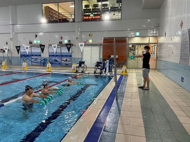 강습일은 오는 12일부터 매주 월, 목(중증), 화, 금(지체)장애인으로 운영되며 백신 접종이 완료된 재활강사가 거리두기 등 방역수칙을 준수한 상태로 진행되며, 중증장애인의 신체적 상태를 파악해 수중운동을 통해 관절가동 범위 향상, 지체장애인은 수영 영법 운동 중점을 맞춰 강습할 계획이다.