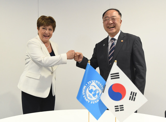 홍 부총리는 "세계 경제 회복과 경제구조 개혁 노력에 대한 IMF 리더십에 감사를 표한다"며 "한국 경제의 회복 및 경제 구조 전환을 위해 IMF 지속적인 관심과 정책 제언을 바란다"고 말했다.