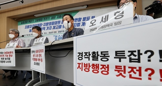 그러면서 경제정의실천시민연합이 최근 발표한 자치단체장·지방의원 농지 소유 현황을 인용하며 "전남도의회 의원 56명 중 62%에 해당하는 35명이 농지를 소유했으며, 1㏊ 이상의 농지 소유자도 5명이나 된다"고 주장했다.