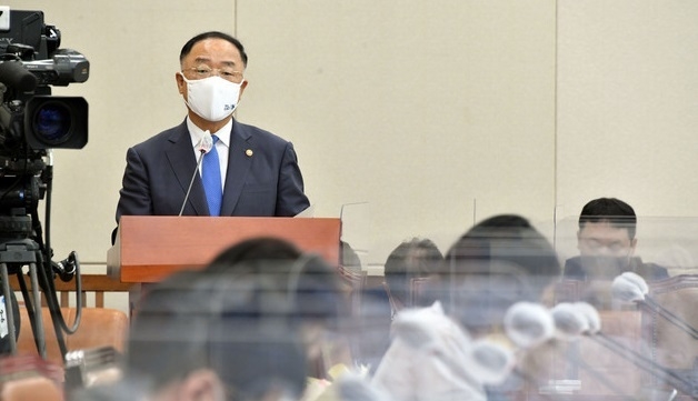 홍남기 부총리는 13일 국회 기획재정위원회 전체회의에서 '강화된 방역조치로 피해가 가중된 소상공인 손실보상을 최우선으로 해야 한다'는 양경숙 더불어민주당 의원 주장에 이 같은 입장을 나타냈다.